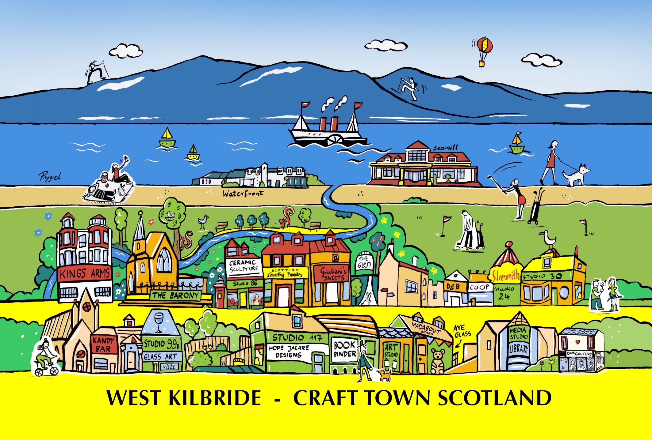 The West Kilbride postcard is based on an illustrated leaflet I designed earlier in 2025 for The Barony Centre and Craft Town, highlighting the village’s creative studios and artistic heritage.