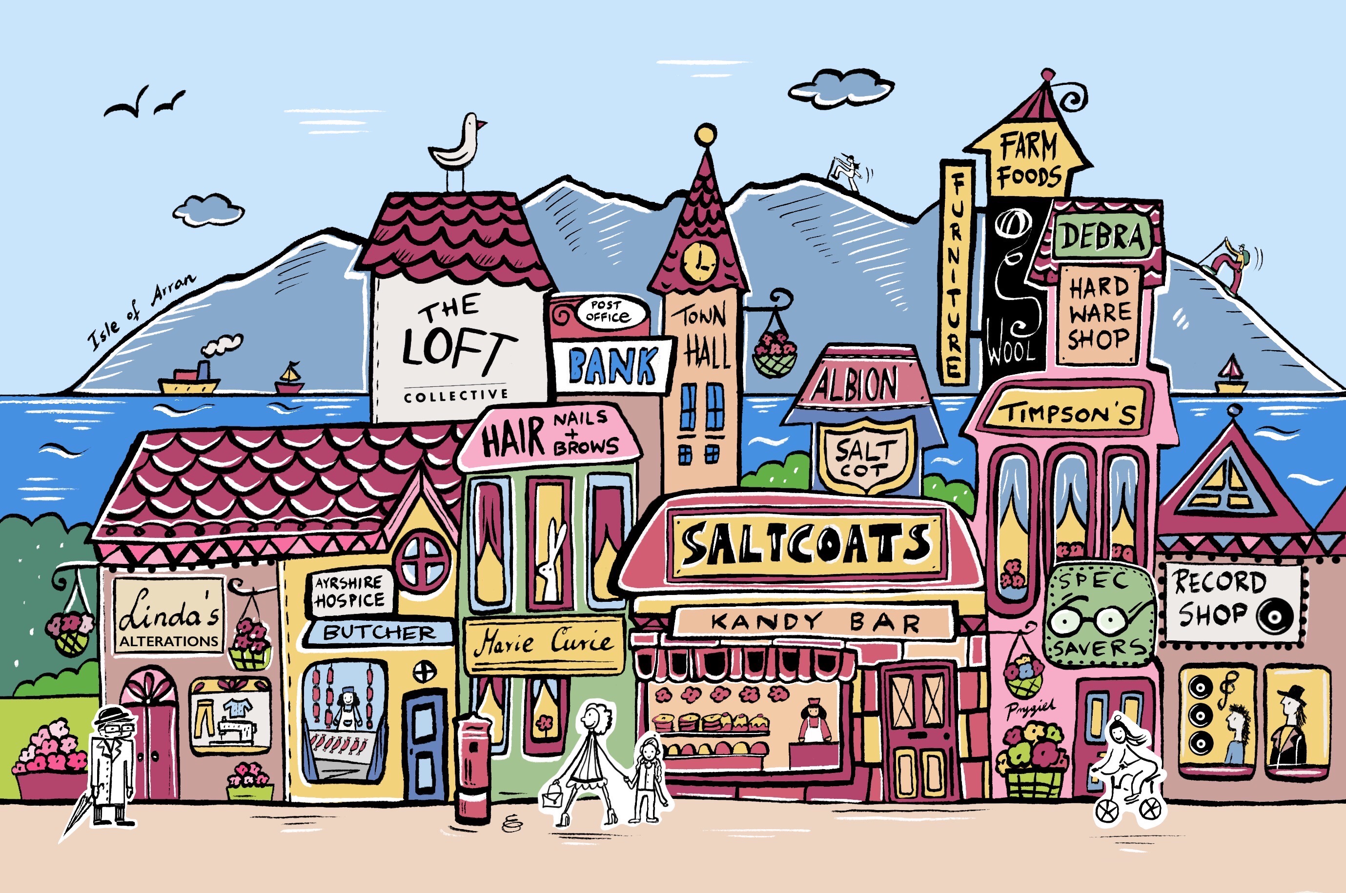 I’ve recently created a new collection of illustrated postcards celebrating Saltcoats and West Kilbride, two coastal towns I live and work in on Scotland’s stunning Firth of Clyde.