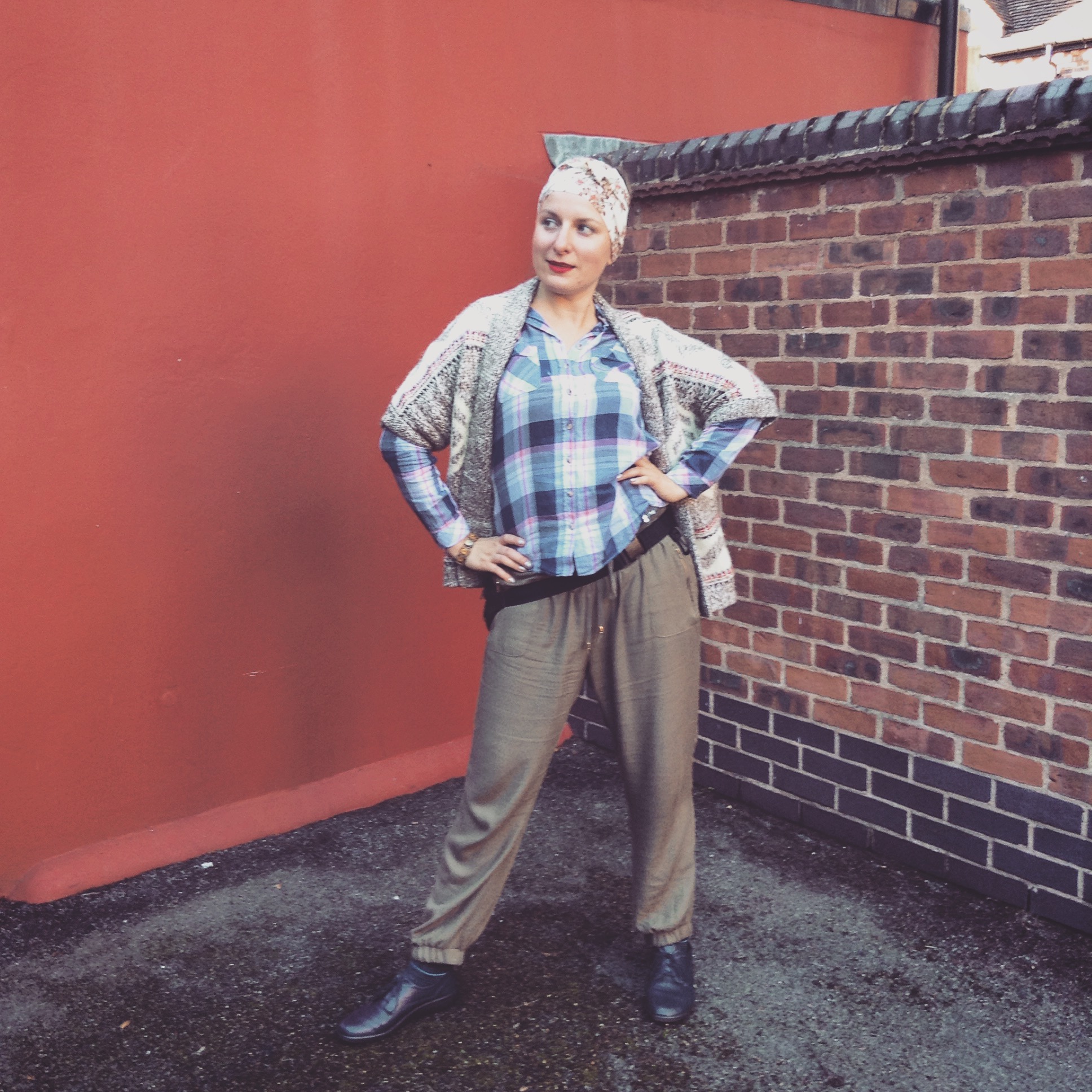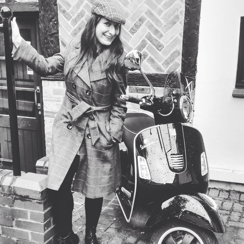 Standing next to a vintage Vespa scooter, dressed in a cotton coat and a Highland-style flat hat, I look as though I'm just about to embark on a ride (to a supermarket).
